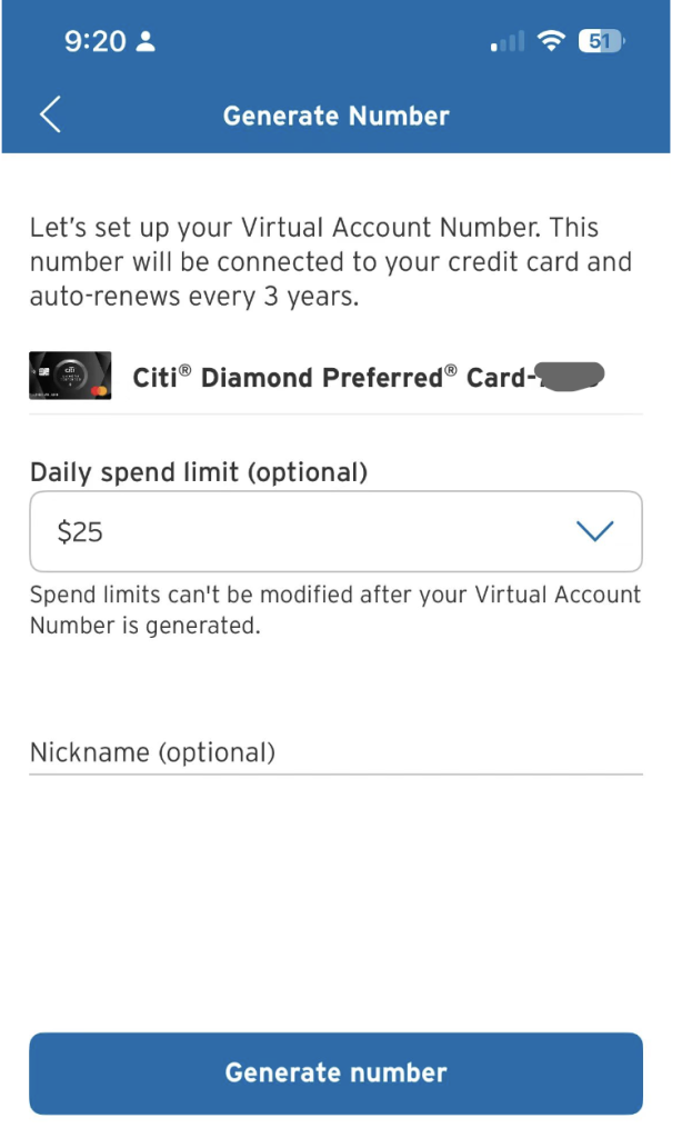 Let’s set up your Virtual Account Number. Thisnumber will be connected to your credit card andauto-renews every 3 years.