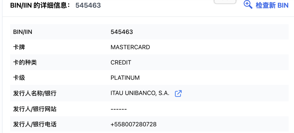 545463 — belongs to Itaú Unibanco S.A. (Brazil) and is a Mastercard — Credit (Platinum) card (often used for both physical and virtual cards).